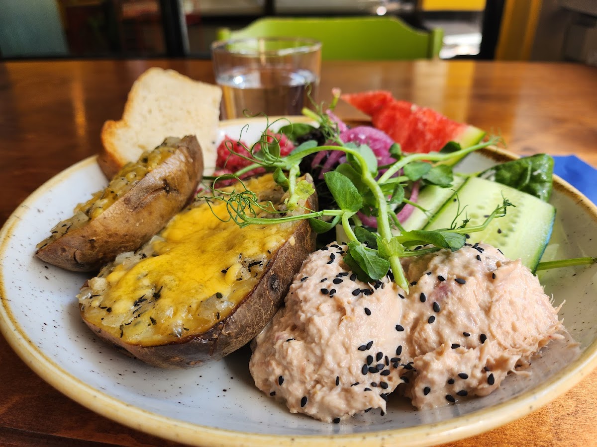 The café also features a delightful offering of baked potatoes. Whether you opt for the "Black Bean Sauce" or the "Vegan Tuna," each dish promises to leave you feeling full and happy. Dining here, as mentioned by reviewers like Tuuli Juntunen and Nandita R, offers not just a meal but an experience—one where you savor your food while enjoying the relaxed atmosphere and the hustle and bustle of fellow patrons.