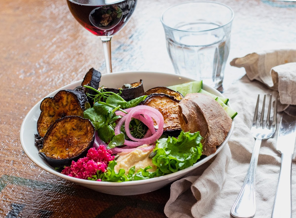 Espresso Edge is particularly celebrated for its diverse menu that caters to both omnivores and vegans alike. Their selections range from creatively crafted salads and robust soups to mouthwatering baked potatoes that are perfect for any time of day. For example, the "Edge's Whim Eggplant Salad" combines eggplant, quinoa, beluga lentils, and marinated onions in a house dressing for a vibrant and satisfying dish that bursts with flavor.