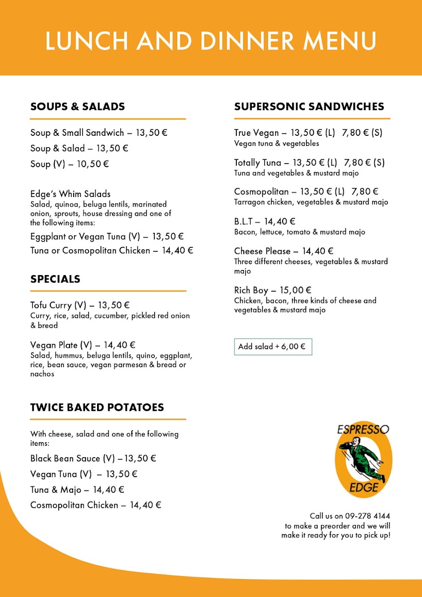 Welcome to Espresso Edge, a delightful café nestled in the heart of Helsinki at Liisankatu 29. This cozy spot offers a warm atmosphere reminiscent of a living room, perfect for both quick lunches and leisurely breakfasts. With a diverse menu that focuses on plant-based options, it’s a haven for vegans and food lovers alike.